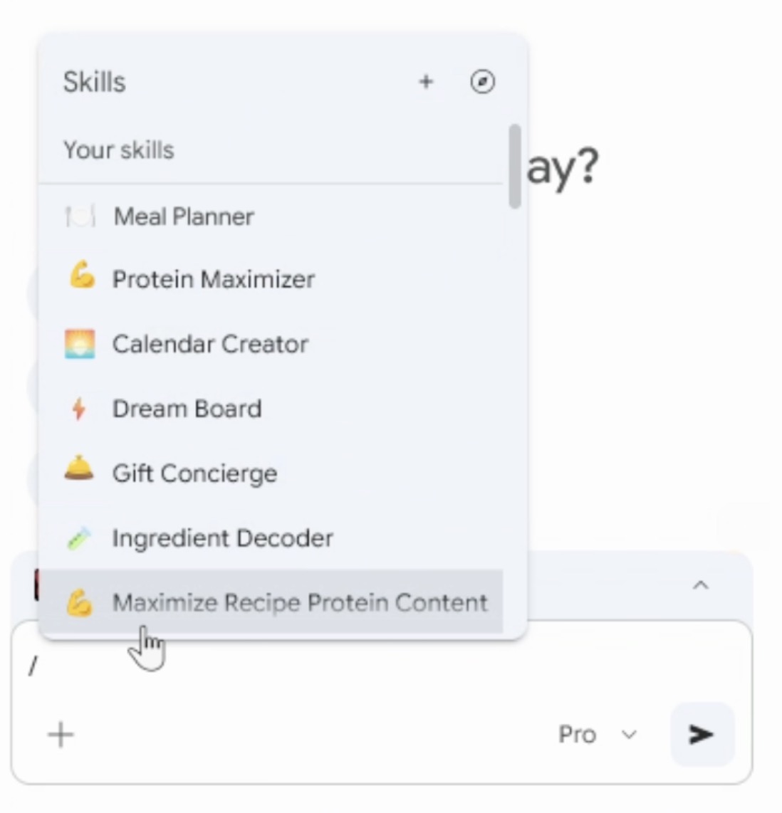 Image Credits:Google (screenshot)In tests, the company found that early adopters used Skills in areas like health and wellness — for instance, to calculate protein macros in recipes — or for shopping comparisons or scanning and summarizing lengthy documents.