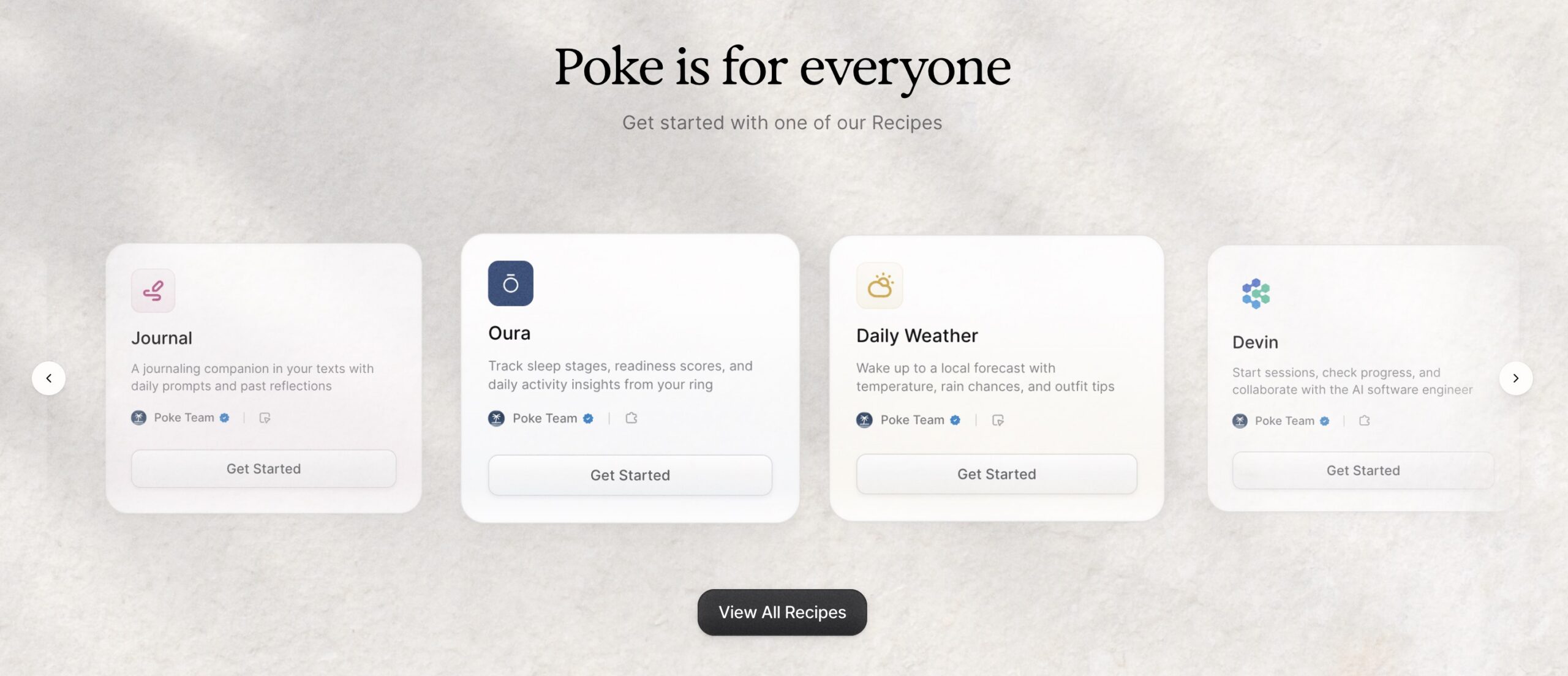 At launch, Poke offers a variety of “recipes” — or pre-made tools that help you automate various aspects of your life or work. These span categories like health and wellness, productivity, finance, scheduling, travel, home, school, email, community, and, for those who are technical, developer tools. Installing them requires a click of a button and then a standard authorization process, if needed.