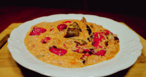 A staple of central Albanian kitchens, Fërgesë is a rich, stew-like dish made with roasted red peppers, tomatoes, onions, and gjizë (Albanian cottage cheese). There are meat and vegetarian versions, both packed with flavor.